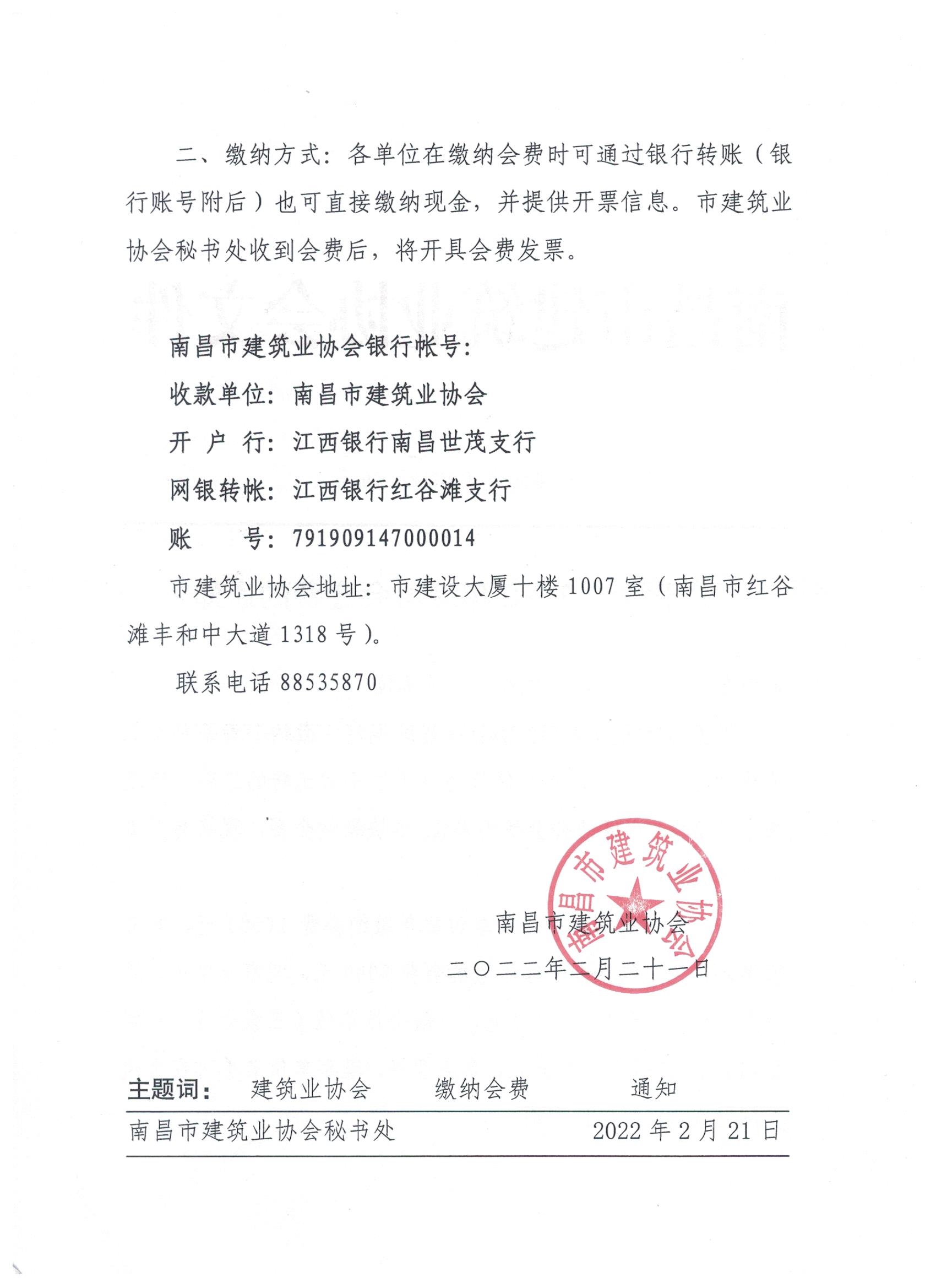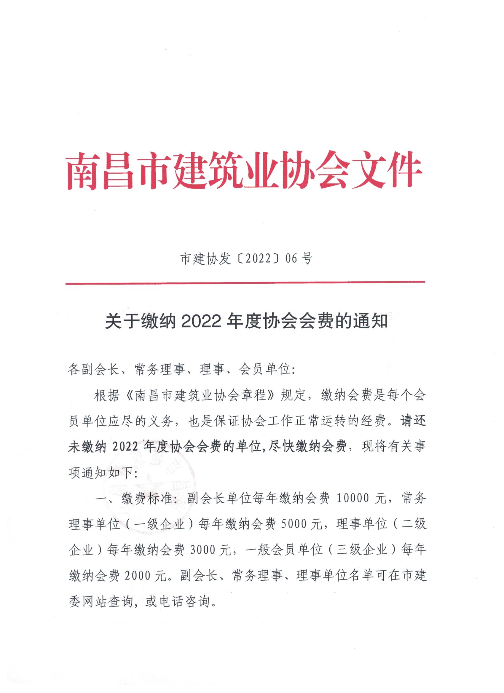 關(guān)于繳納2022年度協(xié)會(huì)會(huì)費(fèi)的通知
